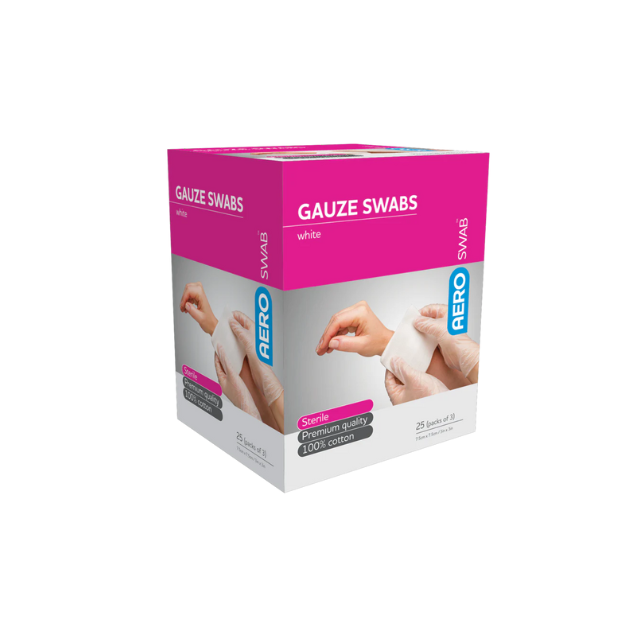 AEROSWAB Sterile White Gauze Swab 7.5 x 7.5cm. Wound Care (Box/25)