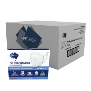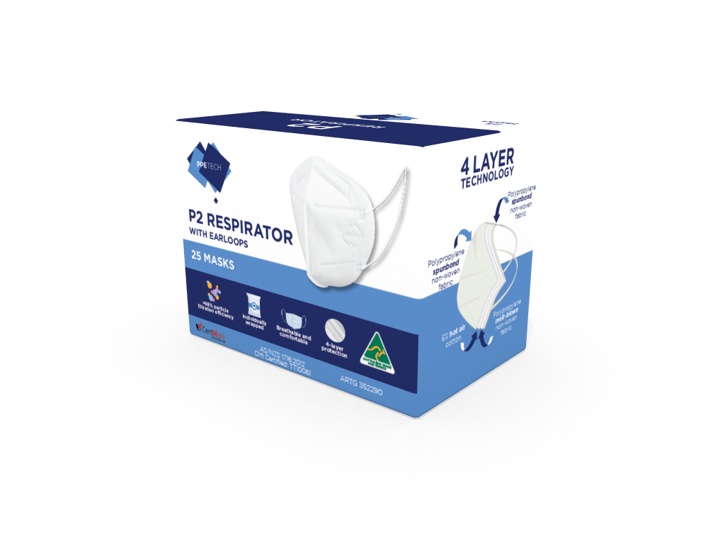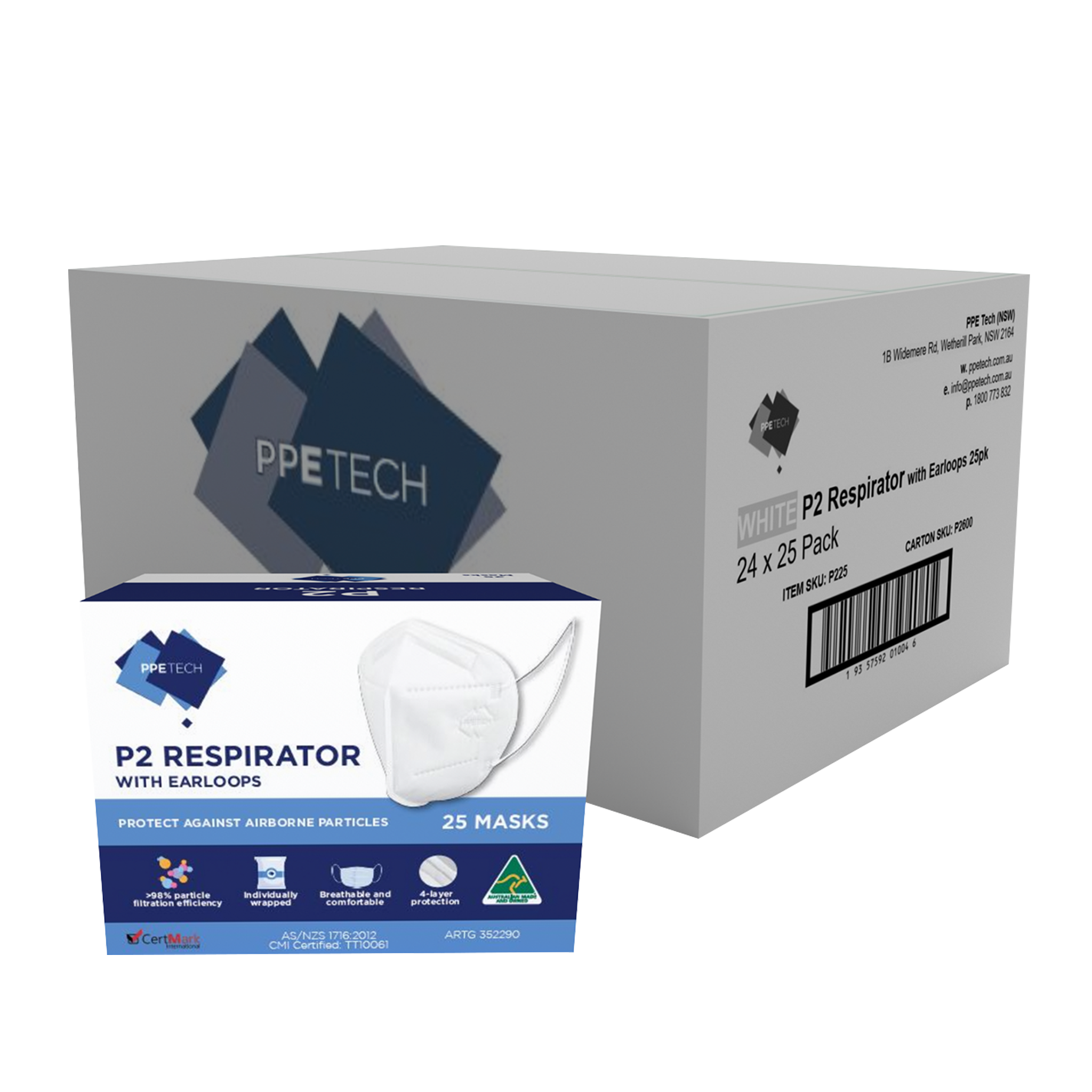 P2 Face Masks | Australian made | PPETech Level 2 | Ear Loop - White | 4 x ply (1Carton/600masks)