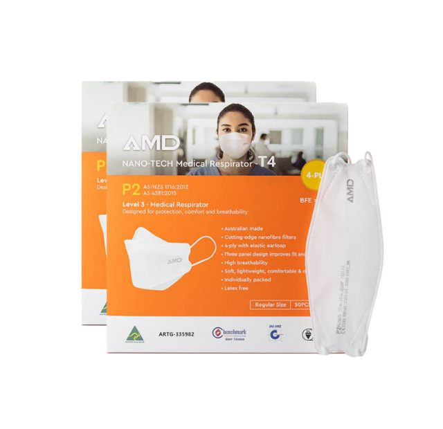 P2 Face Masks | Australian Made |2 x Box Nanotech Level 3 | EarLoop - WHITE | 4xPly (2Boxes/100masks)