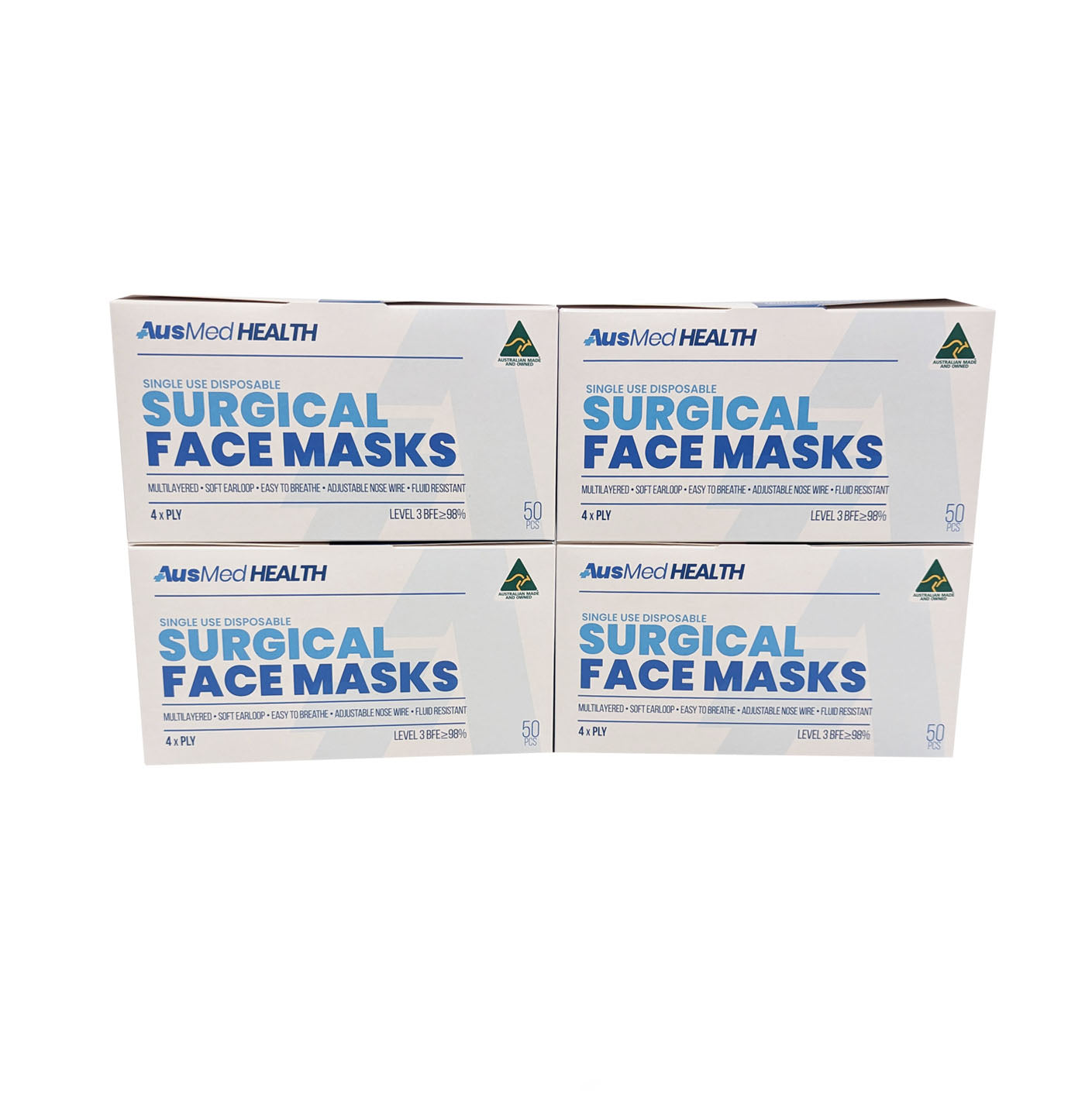 Surgical Face Masks | Australian Made | Premium 4x Ply| Level 3 (4 Boxes/200 Masks)