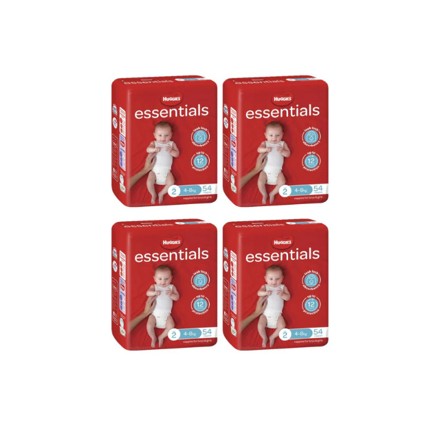 Huggies Essential Nappy Infant. Small/Size 2. 3-8 kgs. (Pack of 54 Nappies)