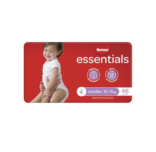 Huggies Essentials Toddler. Size 4 10-15kg. (Pack of 46 Nappies)