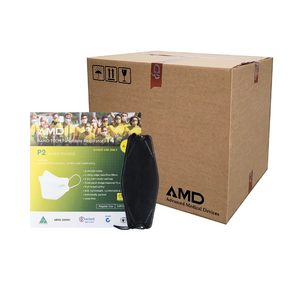 P2 Face Masks | Australian made | AMD Nanotech Level 3 | Ear Loop - BLACK | 4 x ply (1Carton/1000masks)