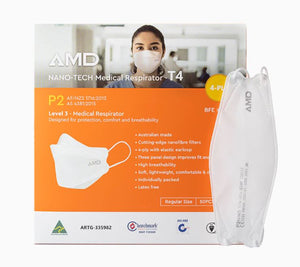 P2 Face Masks | Australian Made | AMD Nanotech Level 3 Ear Loop - WHITE | 4 x ply (1Box/50masks)
