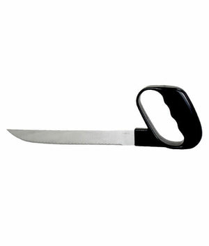 The Reflex Carving Knife is an ergonomic kitchen aid designed to reduce wrist stress and improve control during slicing. Its closed, contoured handle sits at an angle that allows the wrist to remain in a neutral position while cutting, helping to reduce effort and fatigue.