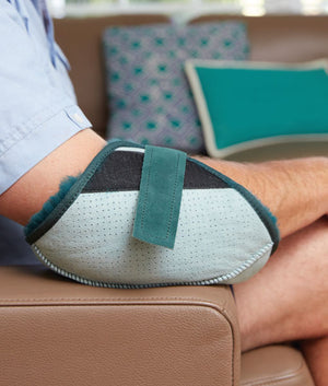 100% medical-grade sheepskin – cushions and protects the elbow, reducing friction and moisture build-up